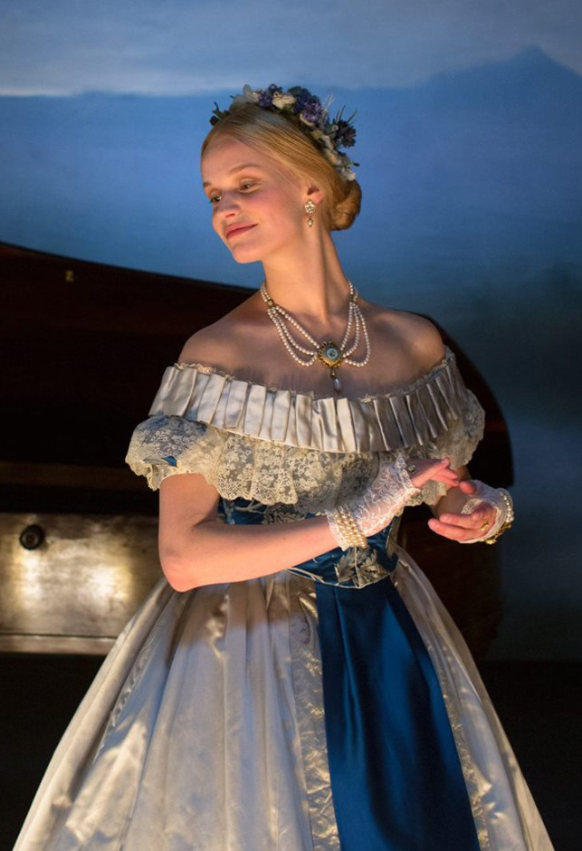 And there are the endless announcements of death that find their way into her morbid poetry, including that of her mother (Joanna Bacon), a less introspective and weaker version of Mrs Dalloway; and her beloved father, Edward, a lawyer and treasurer of Amherst College. As we see in a series of tender, humorous and witty exchanges between father and daughter, Edward believes in education for women; encourages Emily’s poetry writing and accepts Emily’s refusal to attend Church. On the other hand, while he dutifully attends the opera, he objects to Jenny Lind (Marieke Bresseleers) displaying her talent in public on the stage.