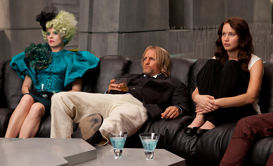 Ross and his team manage to create an absorbing world-within-a-world inside the Capital and populate it with garishly-attired, freakishly-coiffed and colourfully named employees. Woody Harrelson plays an alcoholic former winner-turned-Tribute-adviser, with the name Haymitch Abernathy, and the brilliant character actor Stanley Tucci plays Caesar Flickerman, an outlandish master of ceremonies.