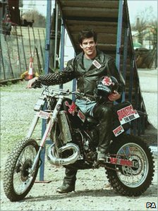 1979 Eddie Kidd daredevil motorcycle stuntman leaps a 80’ gap over an aqueduct in Essex