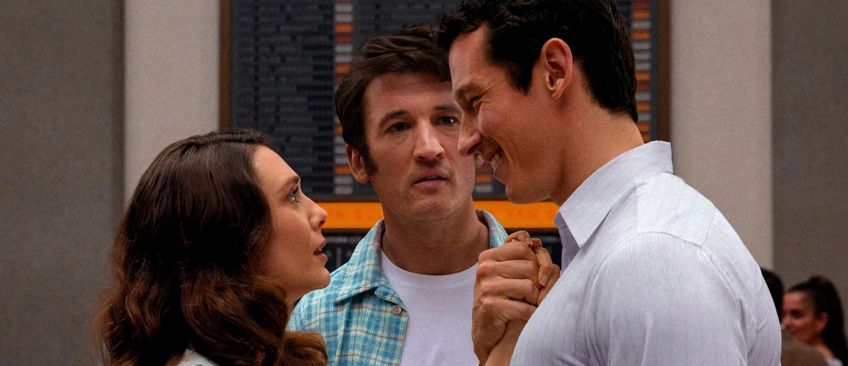 Larry “wakes up” to find himself at The Junction, which looks like a big hotel complex on top of a train station. But Larry, now played by Miles Teller, is 35, because in this version of the afterlife people appear how they looked in the happiest year of their life. And of course very few people, especially in Hollywood romcoms, are happier at 65 than at 35.