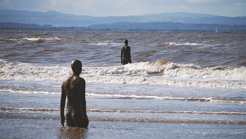 If you are lucky enough to visit at high tide, as I was, then the effect is quite surreal. At first you hardly see any of the statues until briefly a head appears, shortly followed by another and then another. Gradually as the tide recedes more and more of the statues are revealed until they can be seen down the full stretch of the beach. It is, quite simply, a stunning thing to see.