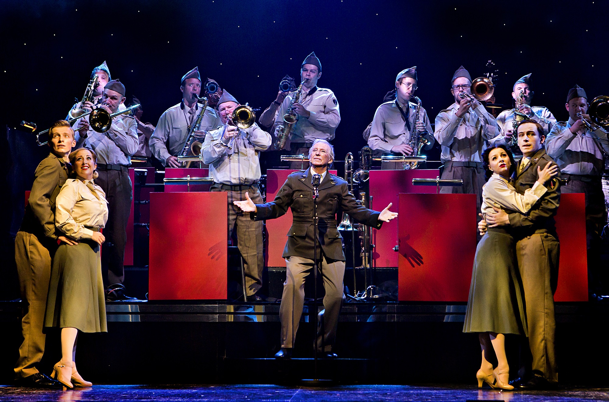 The Glenn Miller Story - Credit Pamela RaithServing as dark aircraft hangar, outside which ominous fog swirls or around which bombs explode as the wartime band plays on, the arched tunnel stage is lit bright and glittering on cheerier or more romantic occasions.