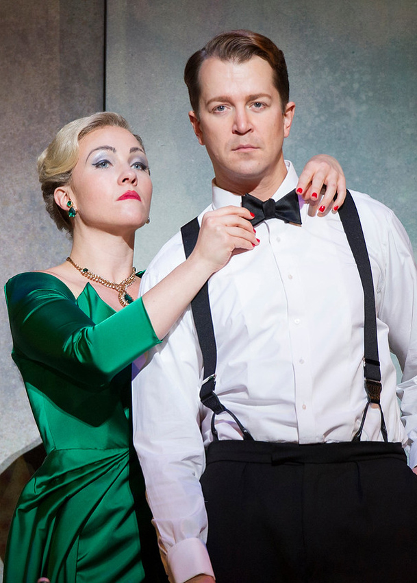 This scene is missing in Nicholas Wright’s libretto, which is based on Winston Graham’s novel rather than the Hitchcock film. The story is set in England during the 1950’s. The settings and projections by Julian Crouch and 59 Productions Ltd are always interesting.