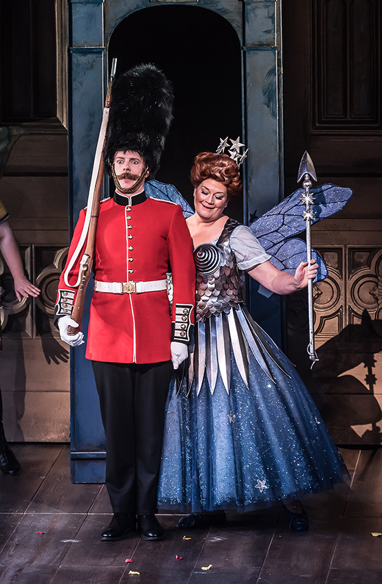 The gay innuendo is even more blatant when the Queen of the Fairies (Yvonne Howard) proposes marriage to the sentry (Barnaby Rea) on duty in his sentry box. “How would you like to be a fairy guardsman?” she asks.