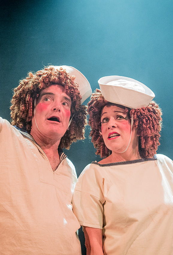Red Peppers. The fun originally was obviously in seeing Noel Coward and Gertrude Lawrence pretending to be dead common music hall artistes, squabbling in their squalid dressing room and performing two tacky routines, one as sailors, the other as toffs with top hats, tails and canes. Rosemary Ashe and Jeremy Rose have the Noel and Gertie roles.